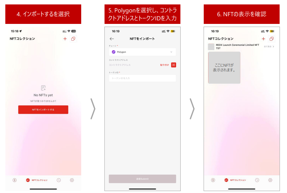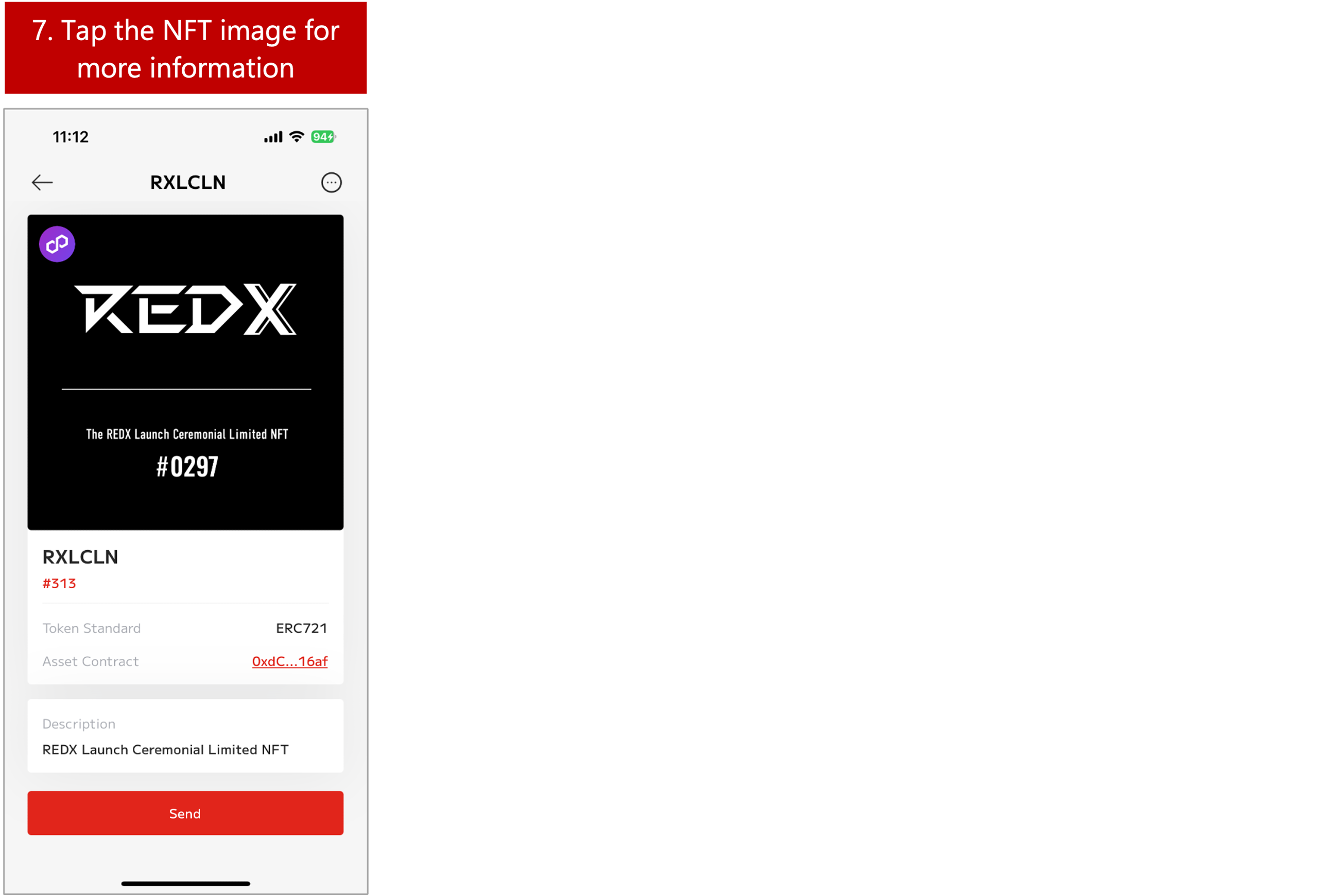 The following is the procedure for receiving your NFT using the REDX Wallet.